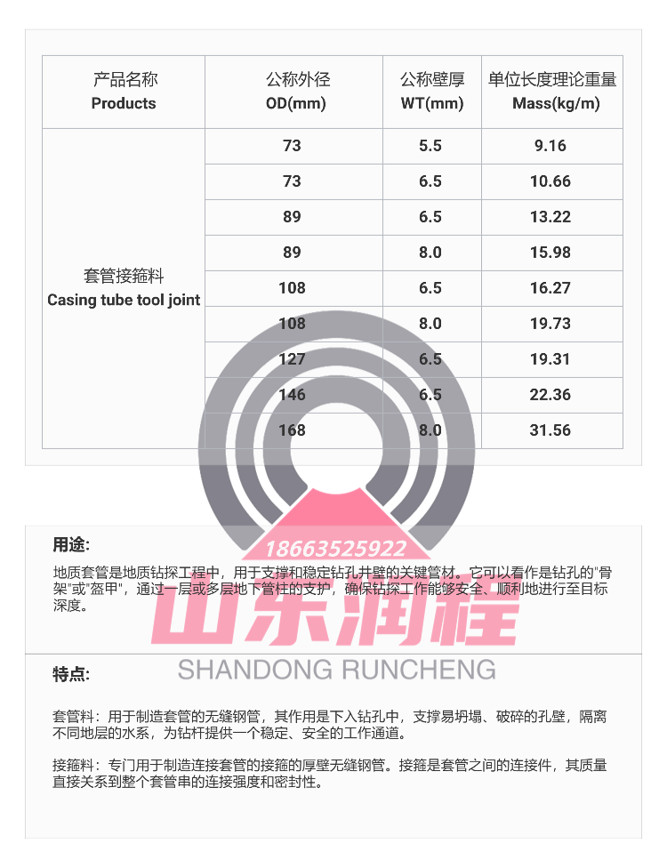 地质套管接箍料规格表